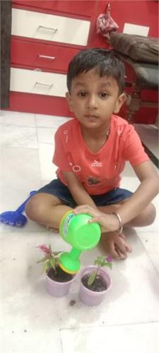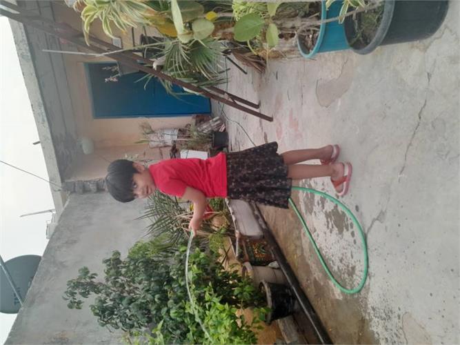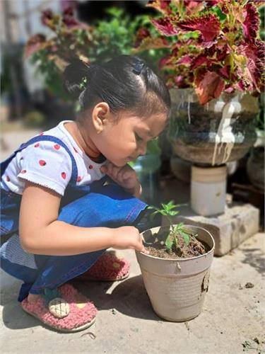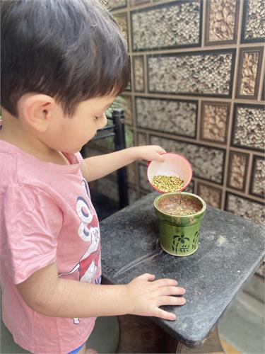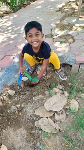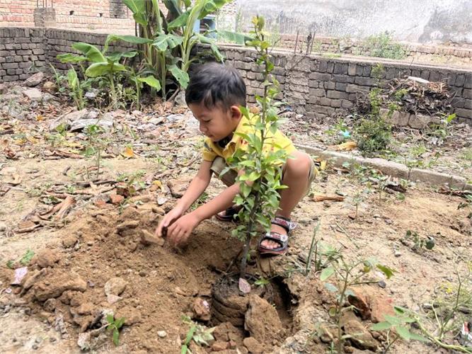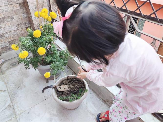 5. Compost pit preparation- Students collected peels of vegetables and fruits and brought it to school. School gardener helped to collect all of it and put them in a pit. Students showed curiosity to prepare compost and use it for the growth of the plants and also for the enrichment of the soil. They have been following the changes to check whether compost is ready. Once ready, it will be used in the school garden as per the plan.