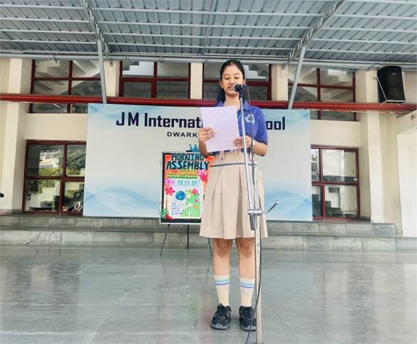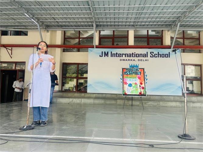 The assembly began with the morning prayer, creating a pious and positive atmosphere. This was followed by the thought of the day, which highlighted the importance of clarity in one’s intentions as the foundation of success and personal growth. The students then presented a short dialogue explaining the difference between goals and intentions. They emphasized that while goals are future-oriented achievements, intentions guide our present actions ,attitudes and shape our character.